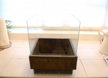 - Con el mismo sellador, el marco de vidrio se sujeta cuidadosamente a la base.