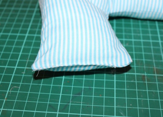 - Llenamos la almohada con un sintepón u otro relleno suave y cosimos el orificio que queda para empacar.