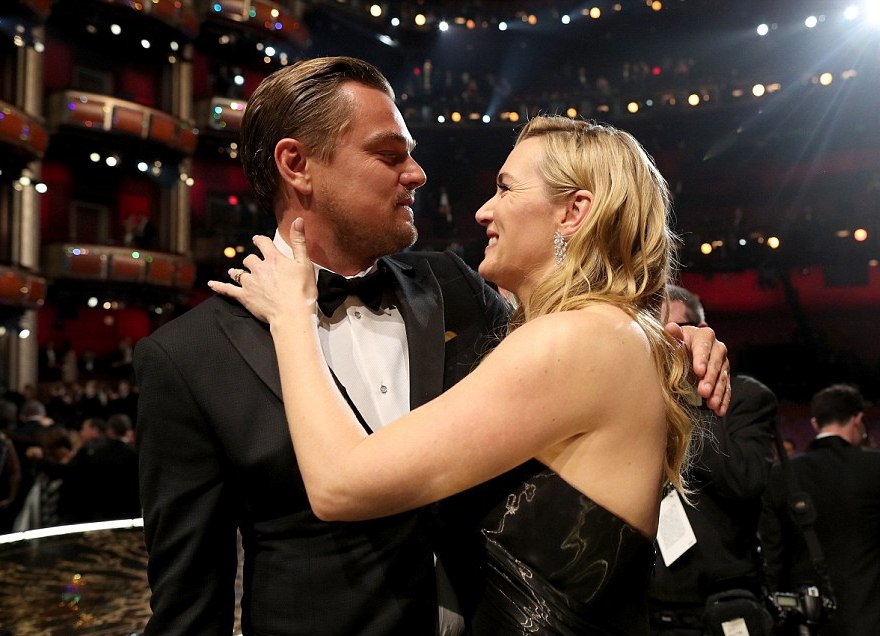 La colega de Leo en el Titanic, Kate Winslet, no contuvo las emociones, lágrimas de alegría rodaron por sus mejillas.