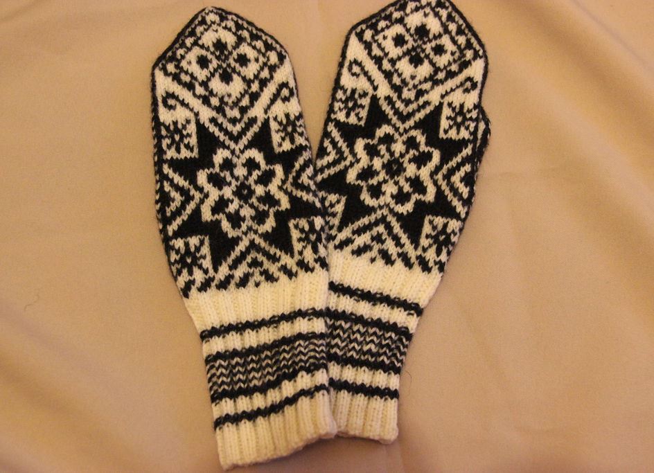Mitones con patrón noruego . Uno de los modelos de acero más populares con adornos noruegos. Un dibujo en este estilo se puede escalar a todo el producto o para transportar un fragmento separado que decorará cualquier parte de los mitones.