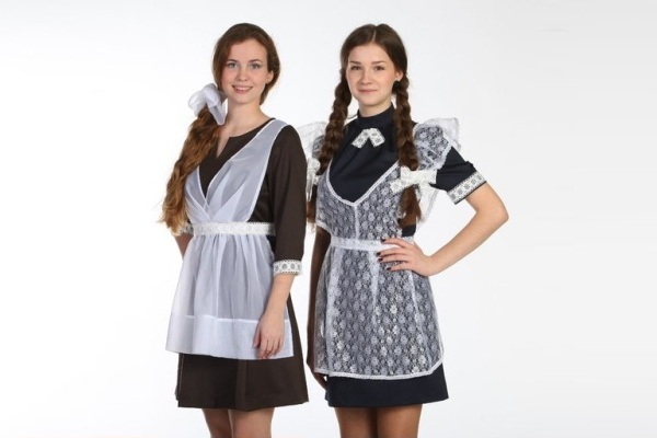 El uniforme escolar con un delantal, en el que el vestido tiene una falda estrecha, se verá bien en las niñas esbeltas. Lo principal es que la parte inferior del atuendo no es ajustada, pero la chica se sentía cómoda caminando.