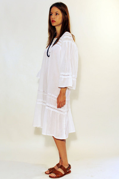 Vestido de algodón blanco, dependiendo del corte, se puede complementar con decoraciones simples masivas hechas de materiales naturales y joyería con estilo. En cuanto a los estilos, el vestido blanco de algodón con un corte bien seleccionado puede permitirse a los propietarios de todo tipo de figuras.